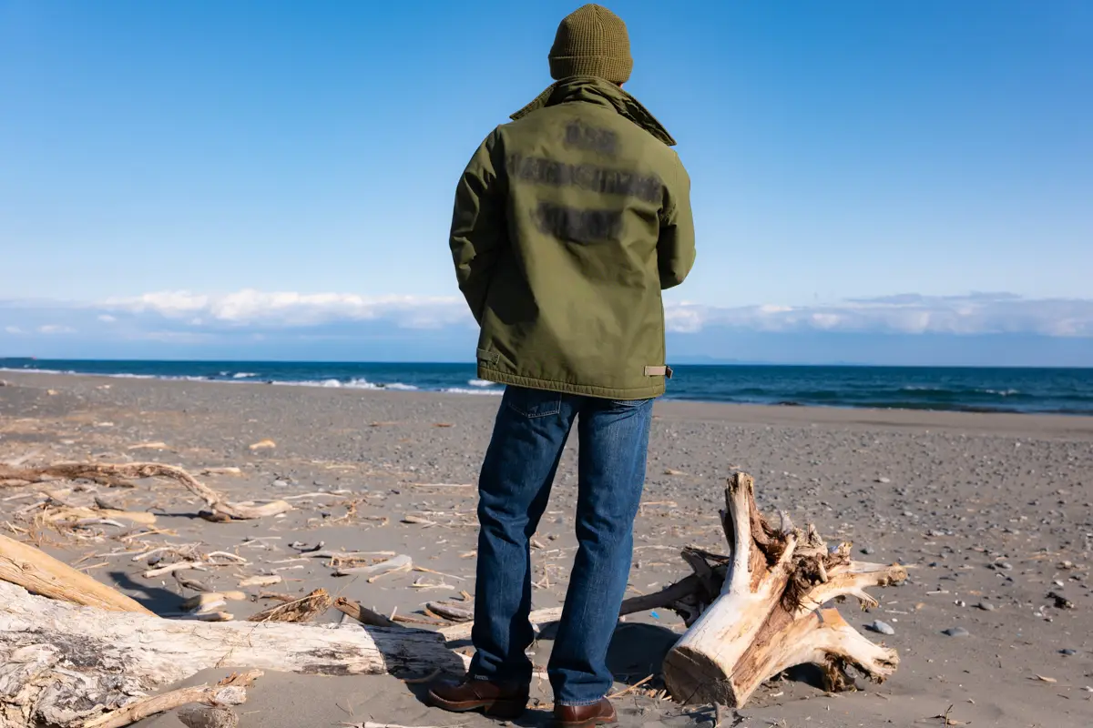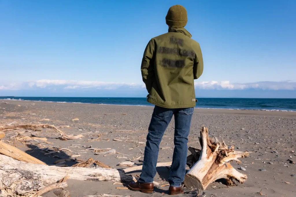 The characteristics of deck jackets, including the N1, lie in their thickness due to the inner lining and their extremely simple form, stemming from their adoption as workwear. The absence of accessory parts like flap pockets and epaulettes, which are part of the M65’s functional beauty, means they have a less distinctive appearance. Compared to the M65, they also give a less pronounced sense of wearing military wear.