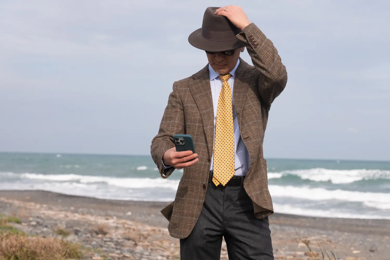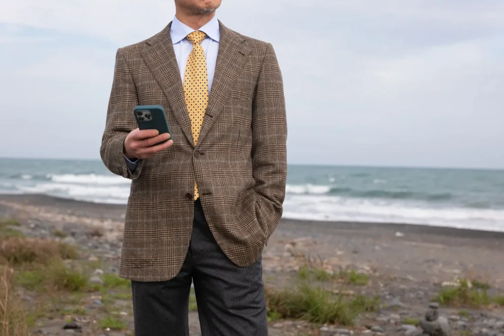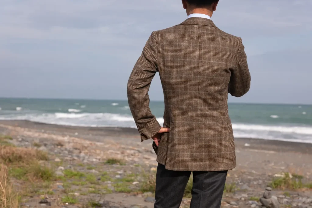 The Neapolitan suit is, in a sense, a philosophy born of Naples itself — lightness and softness, freedom rather than formality. Manica camicia (the shirt-sleeve construction), thin canvas, and a generous use of hand-stitching are its hallmarks. The warmth that only human hands can give a garment, and the rounded silhouette that follows the body in three dimensions — neither of which a sewing machine can replicate — soften the British-derived austerity of the suit and leave behind something refined, light, and easy to wear.