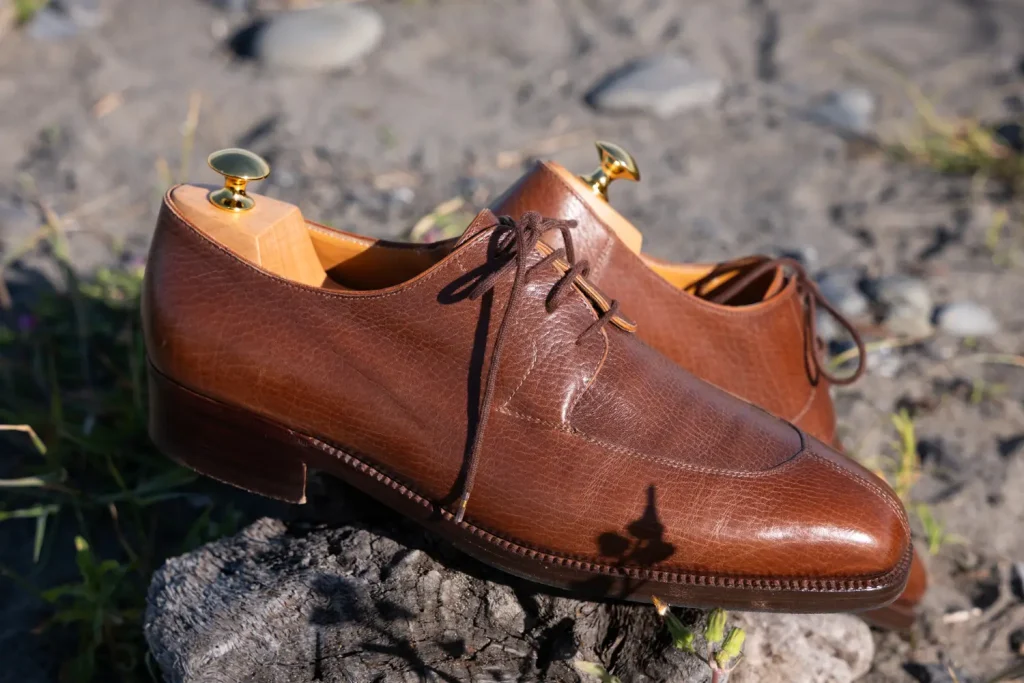 When I want a leather shoe with denim, the Marini derby is what I usually reach for. The color, the grain treatment, and a slightly squared, gently elongated upper bring just the right note of formality to a denim outfit.